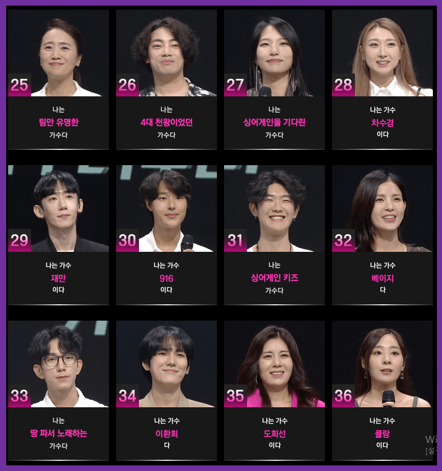 ▶ 싱어게인3 컴백으로 시청자들의 안방극장을 후끈 달아오르게 하고 있는 프로그램입니다. mc 이승기를 중심으로 윤종신, 임재범, 백지영, 김이나, 규현, 선미, 이해리, 코쿤이 심사위원으로 임하고 있습니다.