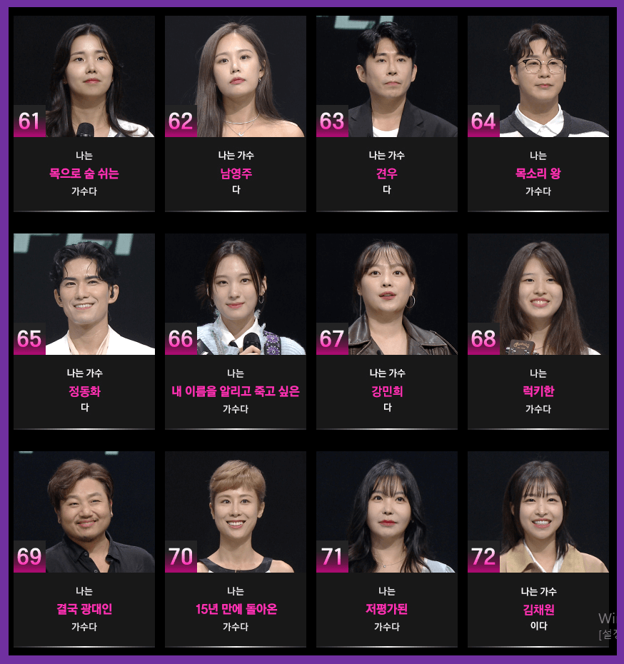 >>싱어게인3 컴백 기념 노래 맞히기 바로가기<<