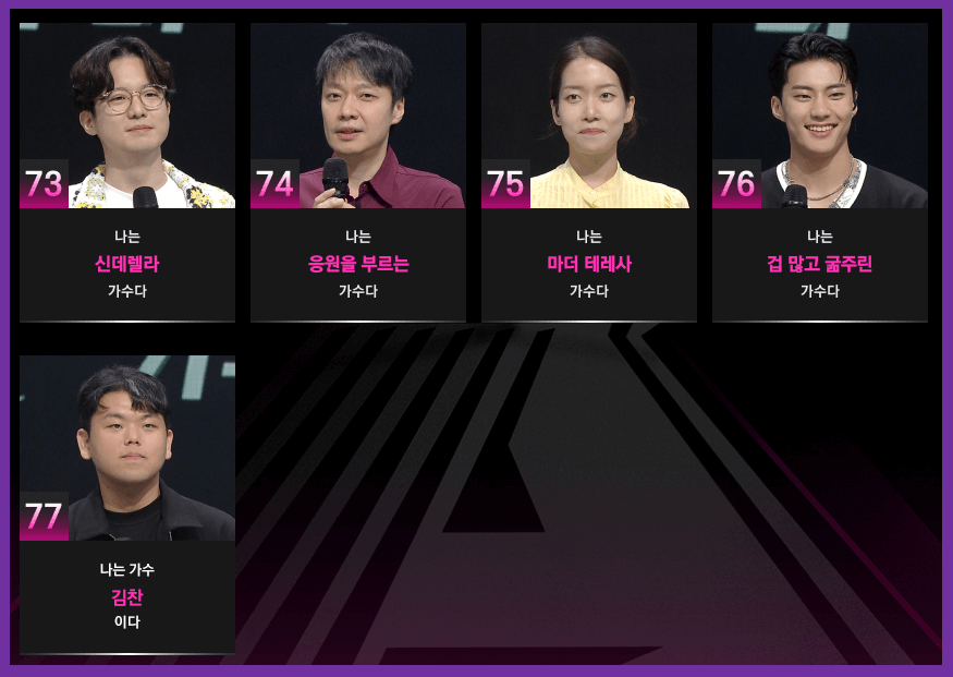 ▶ 이번에는 조건은 단 하나! 단 한 장이라도 앨범을 낸 적이 있는 가수라면 누구나 도전 가능하다는 것입니다. 설 수 있는 무대와 길을 잃어버렸지만 포기를 모르는 그들에게 다시 한번 기회의 장을 제공하고 옥석을 가려 이 시대가 부르는 진짜 가수를 탄생시키는 것이 목표입니다.