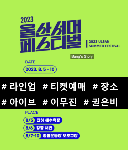 안녕하세요^^ 대한민국 방송 최초 6일간의 릴레이 콘서트! 화끈한 퍼포먼스와 시원한 음악으로 여러분과 함께 하려 합니다. 울산에서의 뜨거운 여름밤을 시원하게 해 줄 2023 울산서머페스티벌 라인업과 티켓예매 등 포인트만 딱딱!! 알아보도록 하겠습니다. 그럼 바로 시작하겠습니다.